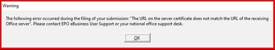 L'URL du certificat du serveur ne correspond pas à l'URL du serveur de l'Office destinataire.
